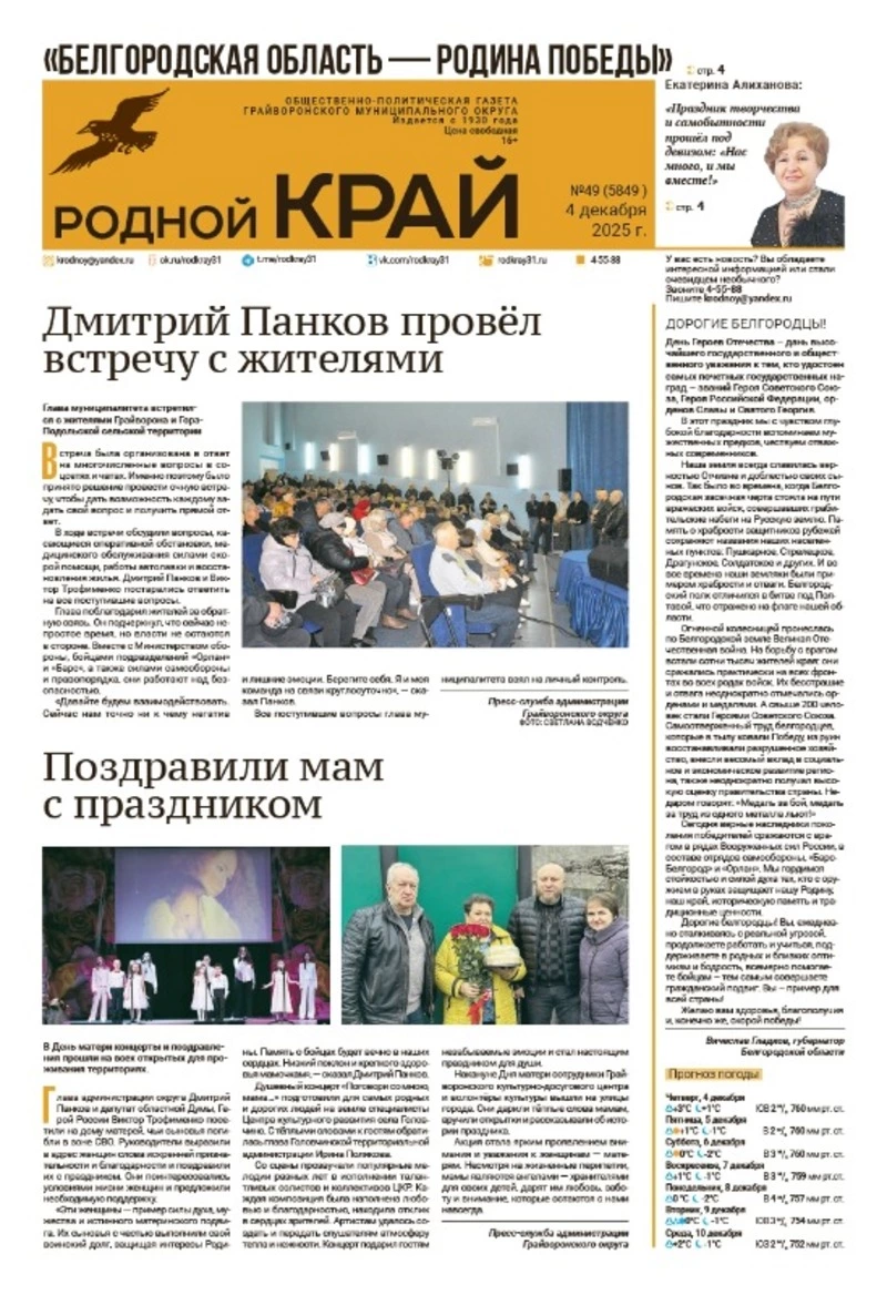 Газета «Родной край» №49 от 4 декабря 2025 года