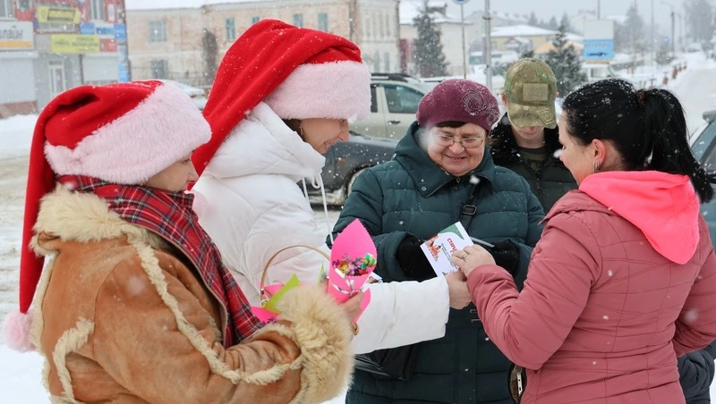 Активисты вышли на центральные улицы Грайворона. Они поздравляли прохожих, дарили добрые слова, улыбки и небольшие сувениры — символы удачи. Организаторы хотели продлить новогоднее настроение и подарить жителям прифронтовой зоны ещё один момент праздника.